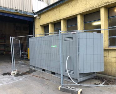 - Installation d’une chaudière mobile en container de 500 kW fonctionnant au gaz qui arrive sur 2 grosses centrales de traitement d’air.